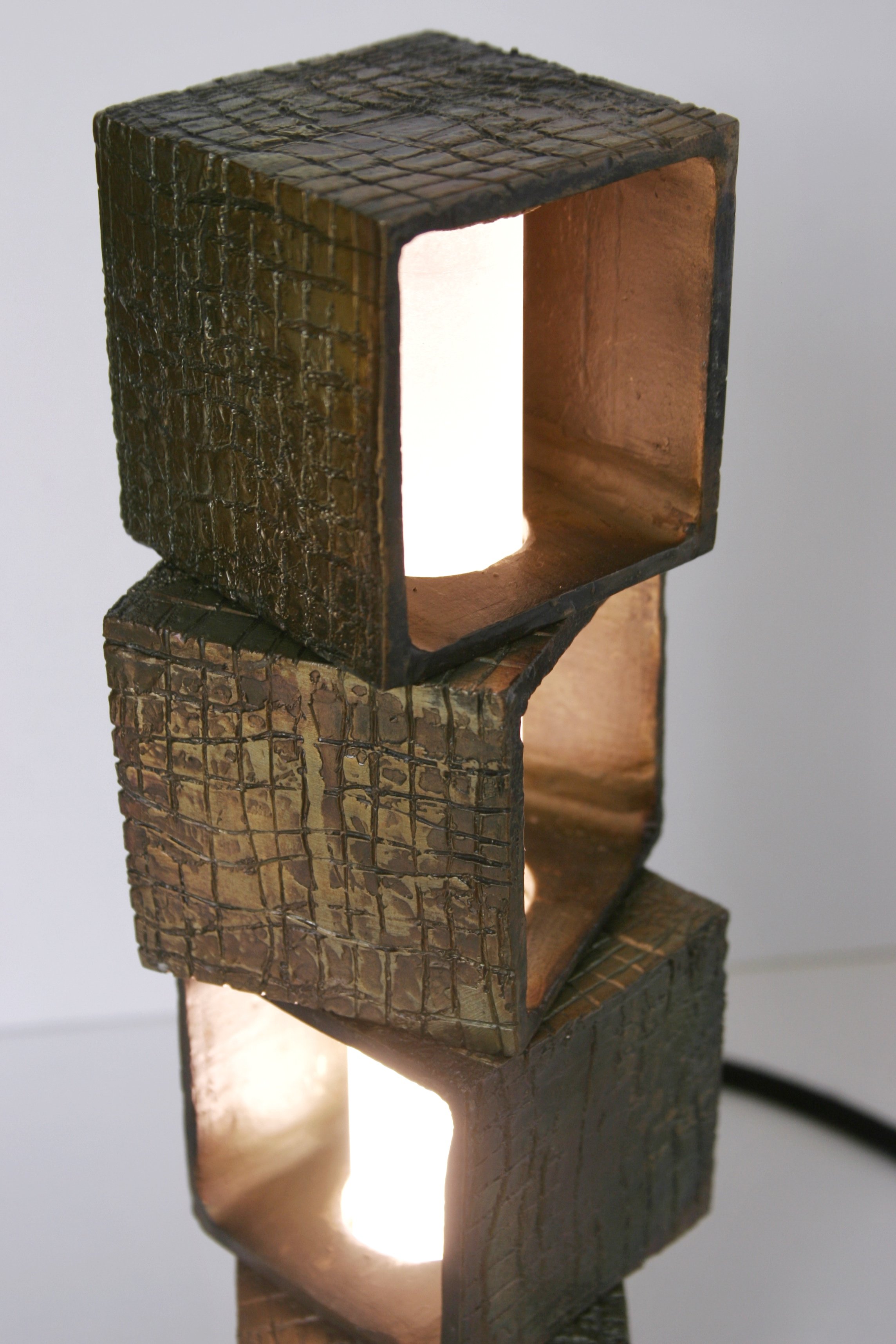 Each of the four cubes is handcrafted using the lost-wax technique, cast in bronze, and carefully colour heated to create its unique finish